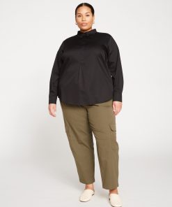 Universal Standard Women’s Workwear Elbe Popover Stretch Poplin Shirt Classic Fit – Black | Black