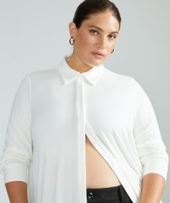Universal Standard Women’s Workwear Elbe Popover Liquid Jersey Shirt Classic Fit – White | White