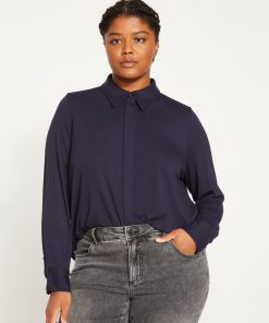 Universal Standard Women’s Workwear Elbe Liquid Jersey Shirt Classic Fit – Midnight | Midnight