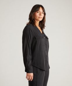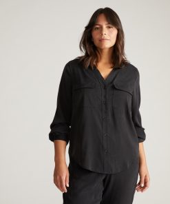 Universal Standard Women’s Workwear Cooling Stretch Cupro Button-down Blouse – Black | Black
