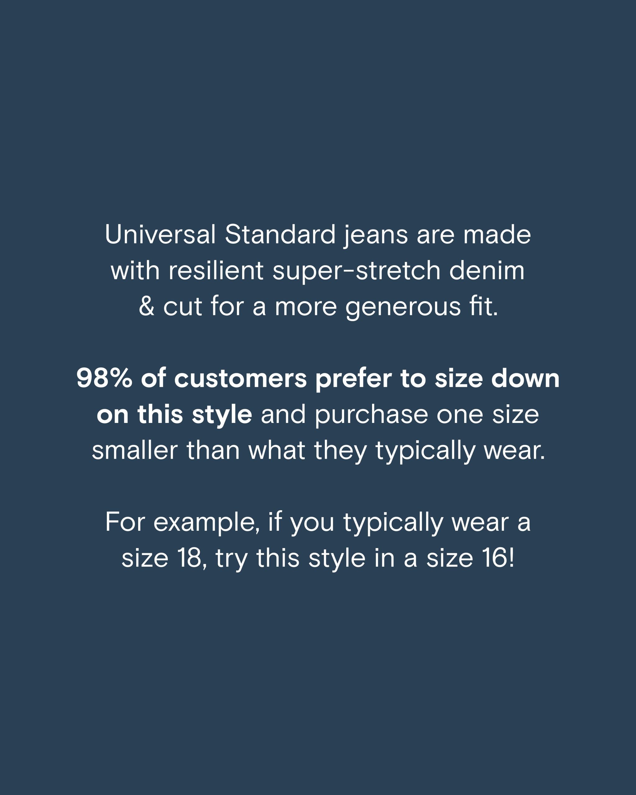 | Universal Standard Sizing | Universal Standard Denim Sizing | Your size in other brands | Waist | Hip | Bust |