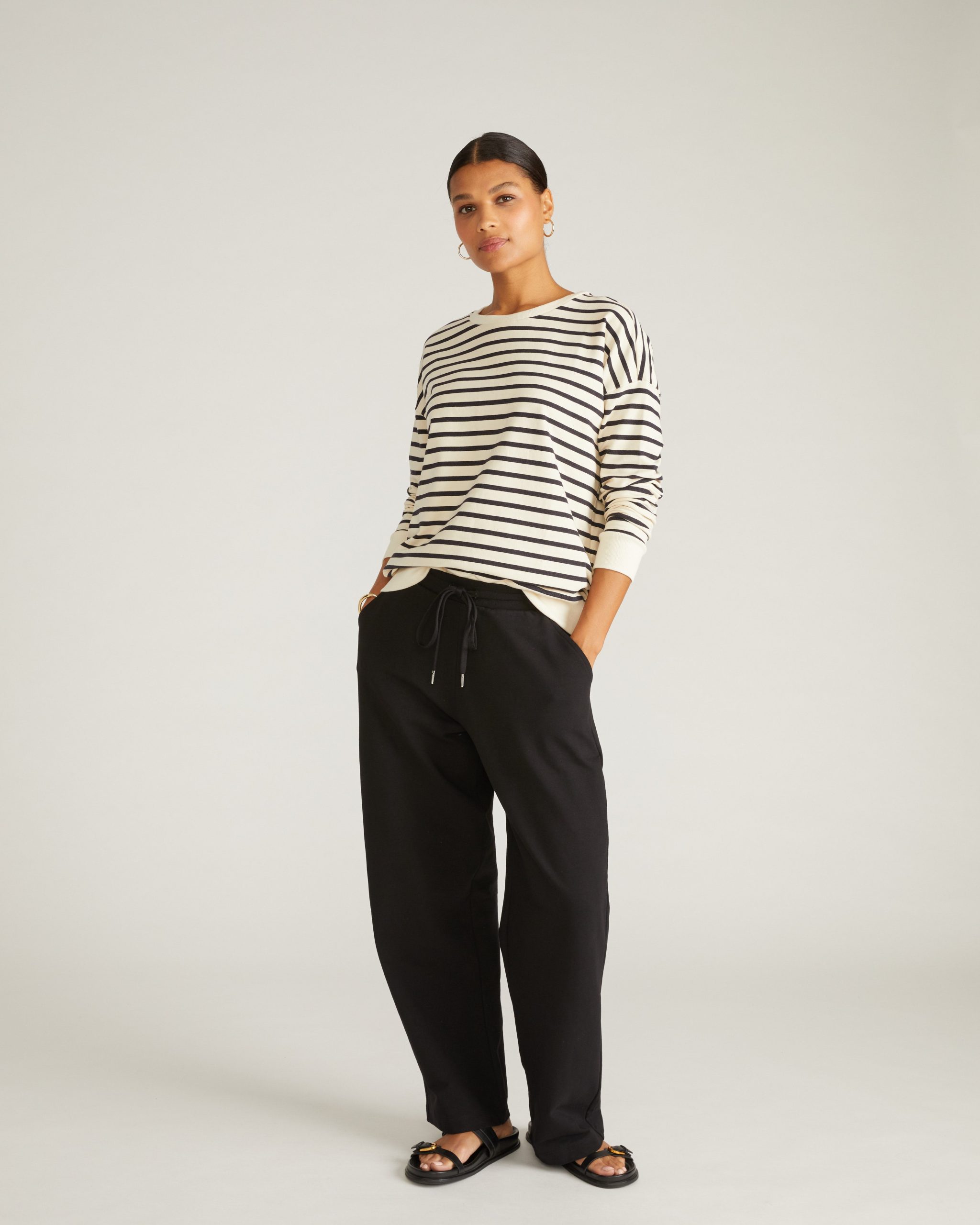 Universal Standard Women’s Tops Lauren Classic Sweatshirt – Ecru/black Stripe | Ecru & Black Stripe