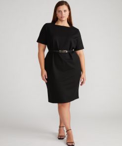 Universal Standard Women’s Workwear Envelope Neck Ponte Dress – Black | Black